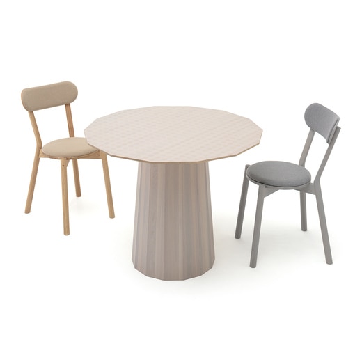 COLOUR WOOD DININGのデザイン哲学と精緻なディテールをそのまま活かしたコンパクトなダイニングテーブル。COLOUR WOOD DINING95の14角形の天板は、2~4人で囲むのにちょうど良いサイズで、移動の際は簡単に脚部から取り外すことが出来ます。天板の小さなドットは、木部の素材感との相互作用で、まるで透き通ったテーブルクロスがかかっているかの様です。