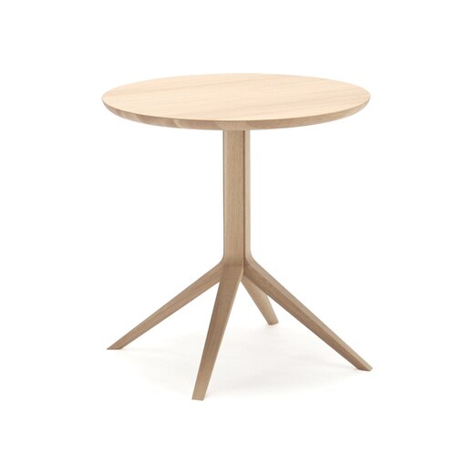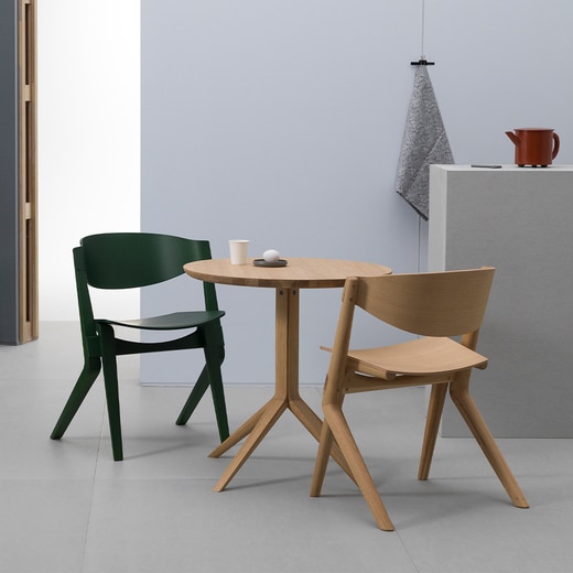 SCOUT BISTRO TABLEは同じシリーズのSCOUT CHAIRの特徴的なディテールを採用しているものの、シンプルでエレガントな外見なので、色々なデザインの椅子に合わせやすいテーブルです。脚が中央にまとまり、コンパクトなサイズなので、カフェやレストラン、家の小さなリビングスペースにぴったりです。日本のナラ材で作られており、天板と脚部は、スチールパーツで固定されています。