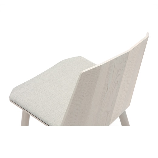 シンプルさと複雑さを行き来するようなグラフィカルな構成のシート部。これを作るために、ナラ材の小さく細い木材を集め、固定部品が見えないようにシェル状に組み立てています。COLOUR WOOD CHAIRは、すでに展開しているCOLOUR WOOD DININGと完璧な組み合わせで、家でもコントラクトユースでもどちらにも対応できるアイテムです。