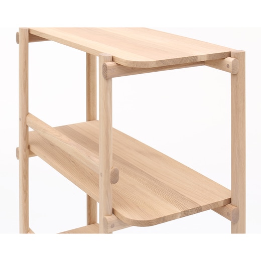 本や雑誌、CD やレコードなどをあまり持たなくなったデジタル時代、ARCHIVE SHELFは個人が収集したアイテムを長く安全に保管するためのプラットフォームであり、私たちが日々の生活で使用し、眺めて思い出したいものを収納、ディスプレイするための家具です。2サイズ展開です。国産のナラ材で作った細い角材とボードを組み立てて作られています。
