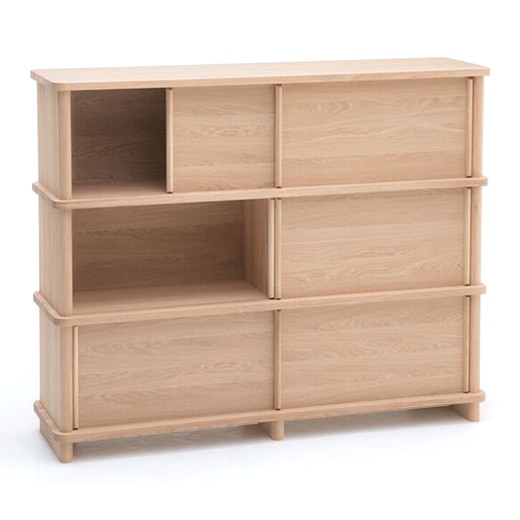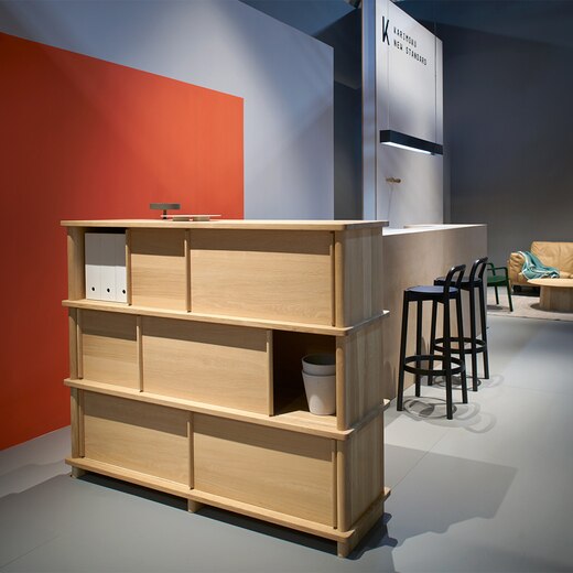 PROPは異なるサイズのロー/テレビボード、サイドボード、シェルフで構成された、シェルフと収納ユニットのラインです。太いL型のモジュールからなるデザインは、少ないパーツでも安定感を高く保ち、個性的な表情をもたらします。使いやすく取り外しが可能なスライド扉を備え、深く考えられたプロポーションやディテールは、リビングルーム、廊下やオフィスなどでの収納やディスプレイにぴったりです。