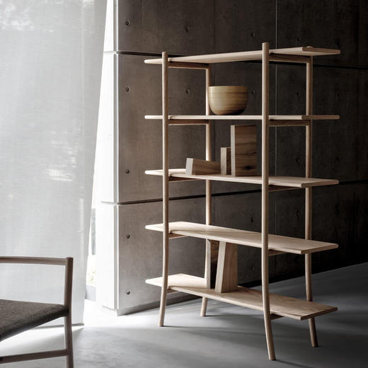 この棚のデザインは、中国出身の現代美術家、蔡 國強によって作成された花火のインスタレーションにインスパイアされています。棚の脚部の緩やかに湾曲したディテールは、熱気球から吊るされたロープのはしごを連想させます。繊細かつ機能的なデザインです。