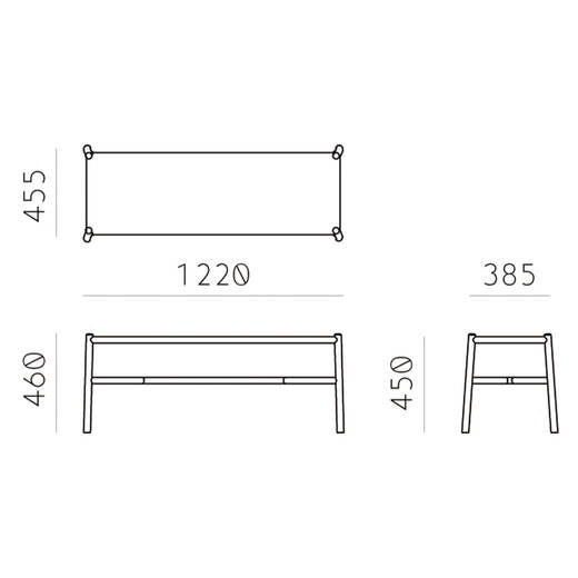 手作業と機械加工のバランスを考えて作られるAriakeチェアのデザインを踏襲したAriakeベンチ。チェア同様に多様な空間で多用途に取り入れることができます。