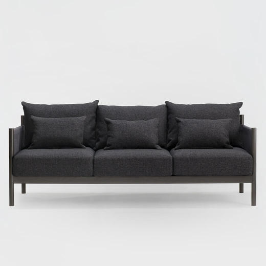 背面に並んだ細木とペーパーコードを編み込んだ肘掛けは、古典的な竹建築と畳の模様に影響を受けたものです。深く低いソファは広くゆったりとした雰囲気のために創作されており、背面の美しい構造は壁面に沿っておいても、空間の中央に置いても完璧です。