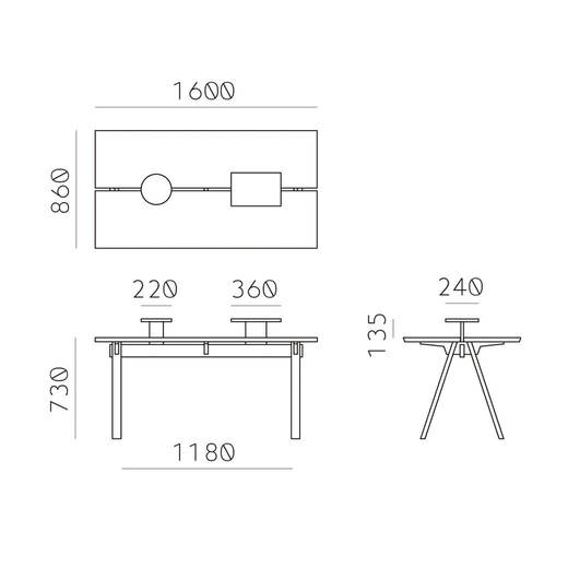 あらゆる作業に対応するテーブルとしてデザインされたサギョウテーブルです。ホームオフィスにおけるデスク、ダイニングテーブル、子供の勉強机としての使用が考えられます。2つに分かれたテーブルトップは、天板の隙間から電源ケーブルを通したり、この隙間に沿ってテーブルトップのアタッチメントトレイを取り付けることができます。