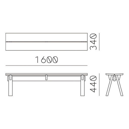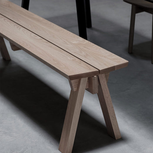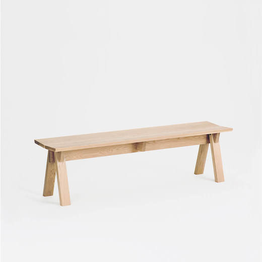 シンプルで快適なベンチ。穏やかに傾けられた座面はベンチとしての快適さを考慮しています。そのシンプルさによって住宅のみならず公共空間まで、様々なシーンに対応します。同じ構造システムであるSagyo Tableとの相性もよく、セットで置かれることを想定してつくられています。