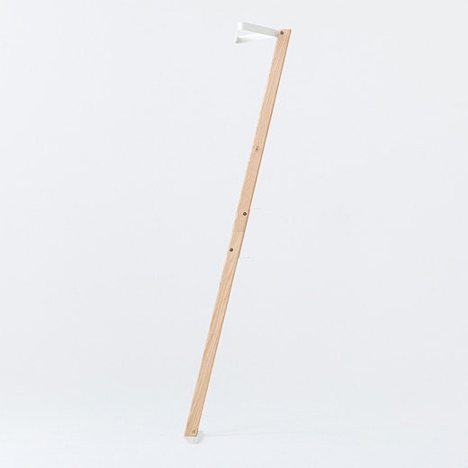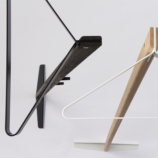 オークの無垢材を贅沢に使い、スチールで成形した三角形のハンガー部とベース、背面フックもすべてスチールのプレートで出来た壁掛けハンガー。来客時に玄関や廊下に設置して上着をスマートに預かるだけではなく、普段は植物などをハンギングし見せる収納としての使い方もおすすめです。