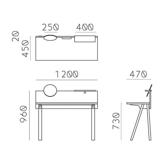 - W1200×D470×H960mm(天板までの高さ730mm)