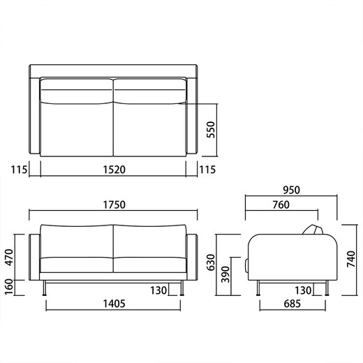 - W1750×D950×H740 SH390 AH630mm