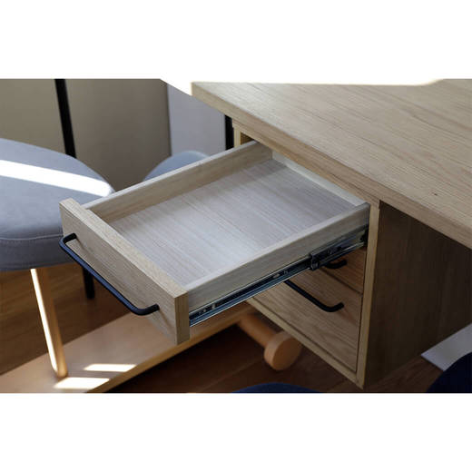 - ●材質 天板・引出し前板:MDF(18mm厚) オーク突板 側板・底板:MDF(15mm厚) ●仕上げ 天板・引出し前板:オイル仕上げ 側板・底板:紙貼り ●梱包状態 完成品(デスク取り付け時、一部組立必要) ●引き出しサイズ 引き出し内寸(小):W220×D315×H40mm 引き出し内寸(大):W220×D315×H95mm ※グラム デスク90サイズ・120サイズは左右に、140サイズには左右・中央に取り付け可能です