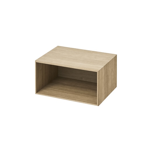 正方形の基本モジュールの半分のサイズのボックスです。 シンプルな外観は単体でも空間に映え、他のサイズと組み合わせてもお使いいただけます。
