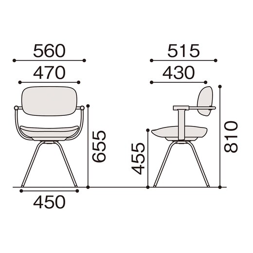 vertebra03(バーテブラ03)の4本脚スチールタイプは、オフィスチェア機能はそのままに、暮らし環境に馴染むシンプルなデザインです。立ち座りのしやすい回転脚タイプです。※4本脚タイプは座面高さの調整機能はございません。