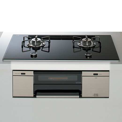- ●バーナー:左右高火力 ●フェイス:ステンレスフェイス ●グリル:マルチグリル ●スマートフォン連動 ※専用アプリのダウンロードが必要です。ご使用には無線LANルータとの接続が必要です。 レンジフード連動機能付(対応するレンジフードが必要です)