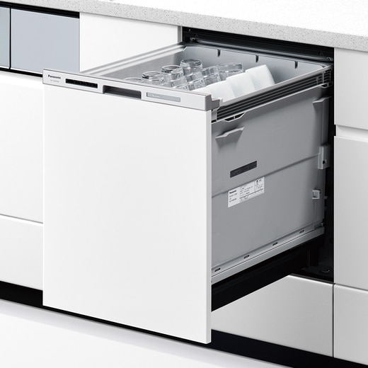 パナソニックのビルトイン食器洗い乾燥機。全コースの洗浄工程で除菌可能なシリーズ。清潔性と使い勝手を追求したハイグレードモデルのディープタイプです。