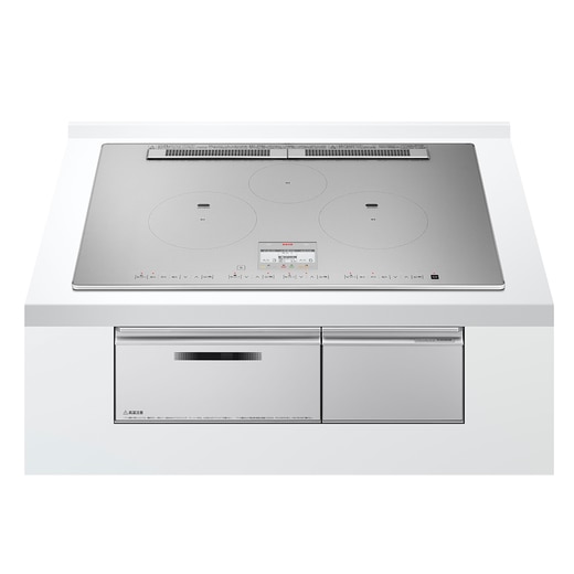 - フルドット液晶、4色カラーLED、ワンタッチ火力ボタン、ガラスタッチ式、フルドット液晶(IH操作部表示と共用)、旨美焼き、フラット庫内、連携調理、フラットトッププレート[プレミアム]/薄形フレーム、温度低減ドア、煙抑制制御(丸焼きメニュー調理時)、光・温度センサー(左右IH)、レンジフードファン連動