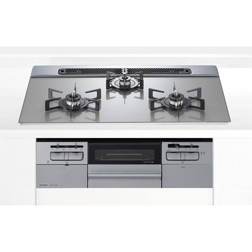- 加熱機器連動、調理油過熱防止機能、立ち消え安全装置、湯沸し機能、焦げ付き消化機能、消し忘れ消化機能、チャイルドロック、両面焼き、高温炒め、グリルあり