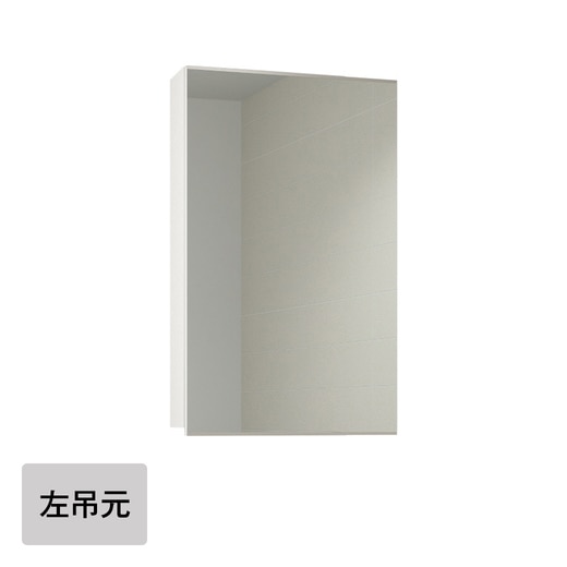 - 一面鏡 ●素材: 扉:防湿ミラー(t5mm)+パーティクルボード(t15mm) BOX:パーティクルボード 棚板:パーティクルボード(3枚) ※左吊元のみのお取り扱いとなります。 ●サイズ: W600×H900+20×D170mm(外寸寸法) ※+20は手がかり用スペースです。扉がBOXより下に20mm長く作られています。 W570×H870×D130mm(BOX内部有効寸法) W569×D125mm 厚15mm(棚板寸法)