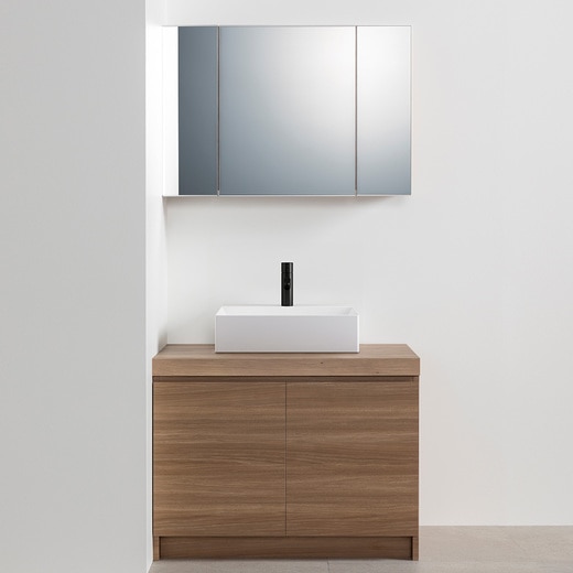 - 三面鏡 ●材質: 外部:オレフィンシート 扉:防湿ミラー(t5mm)+パーティクルボード(t15mm) 防湿処理:ミラー端部のみ BOX:パーチクルボード 棚板:パーチクルボード(6枚) ■ホテルミラーボックスW900 W900 × H600+20 × D176mm(外寸寸法) ※+20とは手がかり用スペースのこと。 扉がBOXより下に20mm長く作られています。 (BOX 左・右) W164.5 × H560 × D130mm(BOX内部有効寸法) W162.5 × D126mm 厚20mm(棚板寸法) (BOX 中央) W470 × H560 × D130mm(BOX内部有効寸法) W468 × D126mm 厚20mm(棚板寸法)