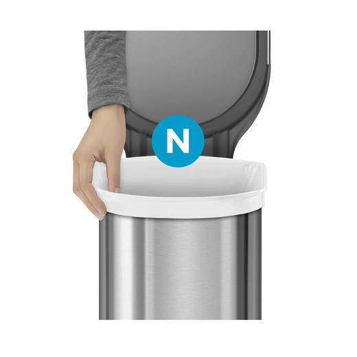 - 材質:ステンレススチール(フィンガープリントプルーフ加工)、ABS樹脂、ポリプロピレン 容量:45L フタを開いた状態の高さ:約1050mm 【商品の特徴】 ゴミ袋の交換は、リム(ふち部分)をあげて取り付けるだけです。リムは折り返したゴミ袋の縁を隠し、袋をしっかりと固定します。 特許を取得したリッドショックテクノロジーにより、フタがゆっくりと静かに閉まります。 フタが背面の壁などに当たることなく広く開くよう設計されています。 インナーボックスなし。 ※市販のゴミ袋もご利用いただけます。 市販のsimplehuman コードNパーフェクトフィットゴミ袋を使用すると本体にぴったり収まり、よりスタイリッシュにお使いいただけます。