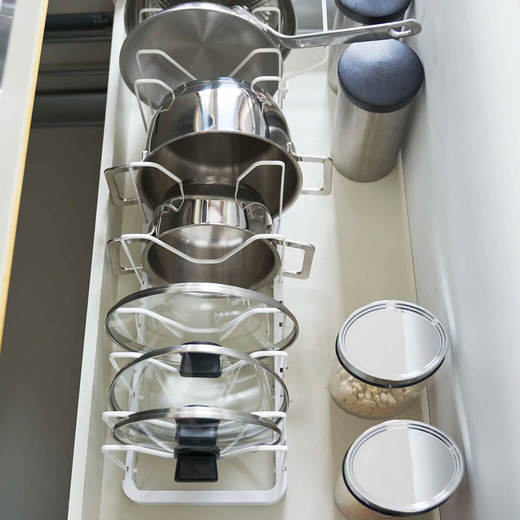 シンク下 伸縮鍋蓋&フライパンスタンド ホワイト