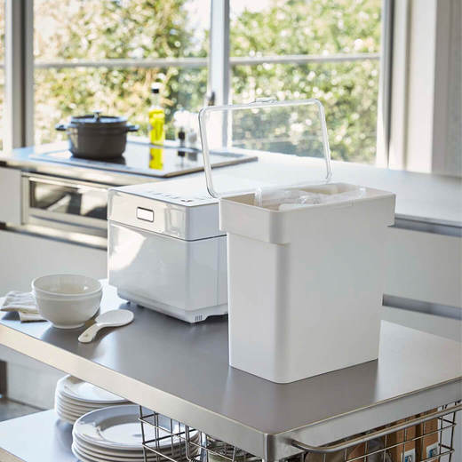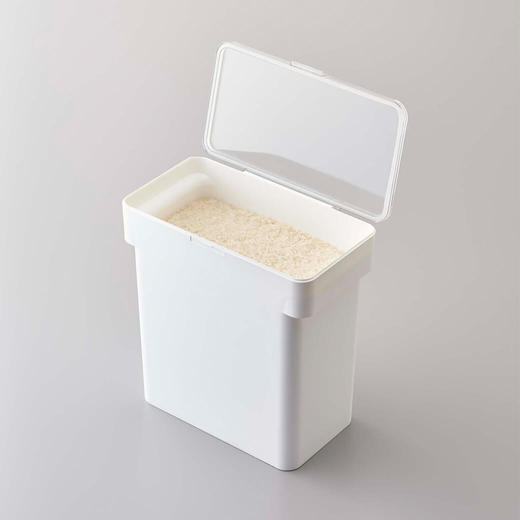 5kg用のお米を袋ごと入れてオシャレに保存できるスタイリッシュな米びつ。蓋をパチッとロックしておけばパッキンでしっかり密閉され、お米を湿気と酸化から防ぐことができます。蓋は全面が開くのでお米がすくいやすく、残量が分かりやすい透明蓋を使用しています。本体には、大きく持ちやすい取っ手がついているので、持ち運びも簡単です。
