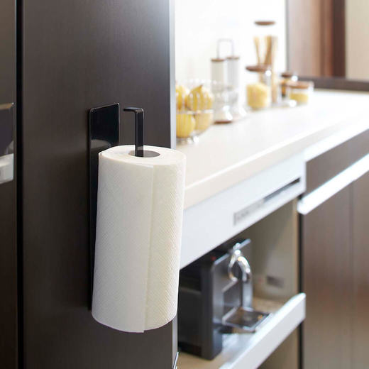 冷蔵庫の側面などにマグネットで簡単に取り付けられるキッチンペーパーホルダー。横向きにすればタオルも掛けとしても使用できます。