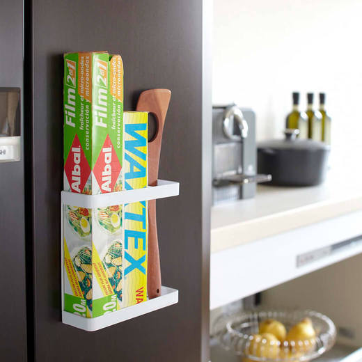 - ●材質 本体:スチール(粉体塗装) マグネット ●対応サイズ 約幅4.5cm×奥行き4.5cm以内×高さ15.5cm以上の食品包装ラップフィルム箱 ●取り付け可能場所 マグネットが付く平らな面・スチール壁面 ※耐荷重は鉄の厚みや表面の塗装・壁面の強度や状態によって異なります。