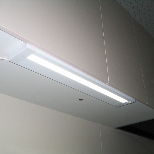 消費電力に優れたLED照明です。薄型設計で吊戸棚下におすすめです。
