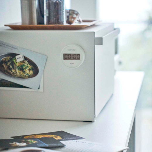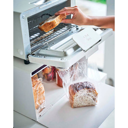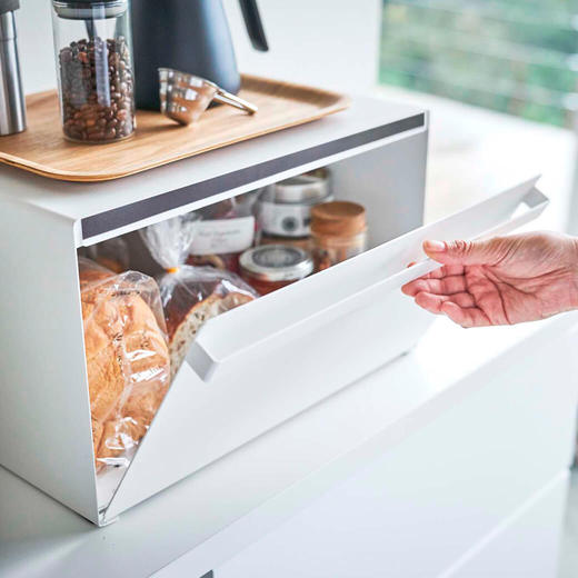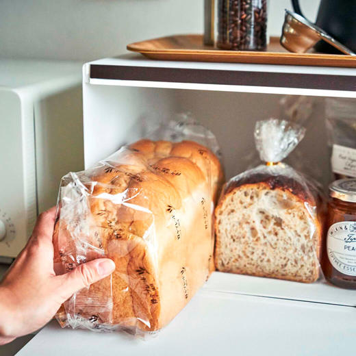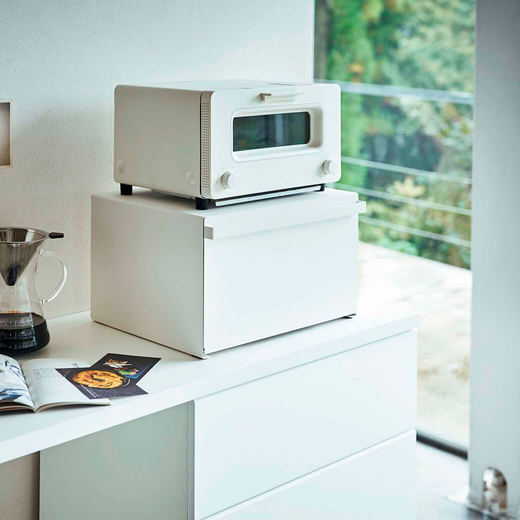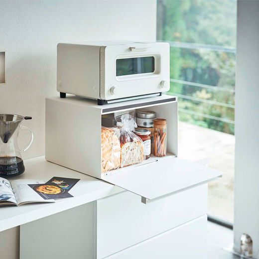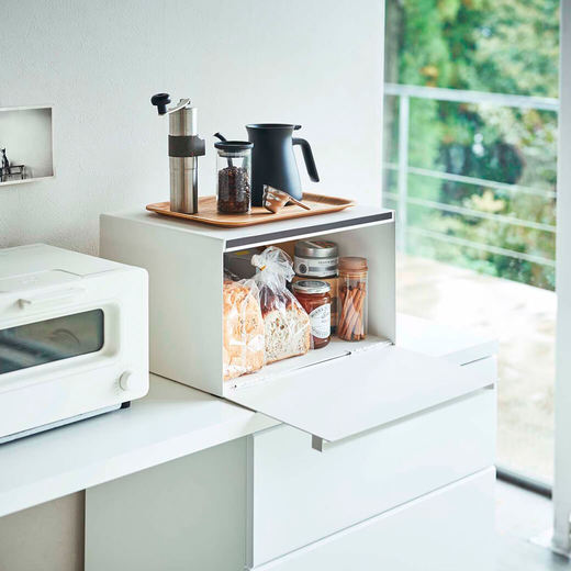 パンや調味料、紅茶などをすっきりとまとめて収納できる27Lの大容量ブレッドケース。キッチンカウンターなどで雑然としがちなパンやお菓子、調味料などを隠しながら美しく収納できます。また上にはトースターなどを置くことも可能です。