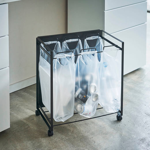 目隠し分別ダストワゴン3分別 ブラック
