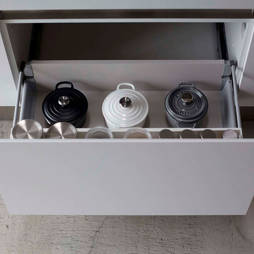 - ●材質 本体:スチール(粉体塗装) ●その他 対応サイズ:引き出し側面のサイドバーの直径約13mm以内 内寸サイズ:W520~865×H70×D100mm