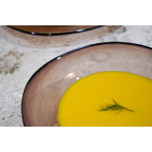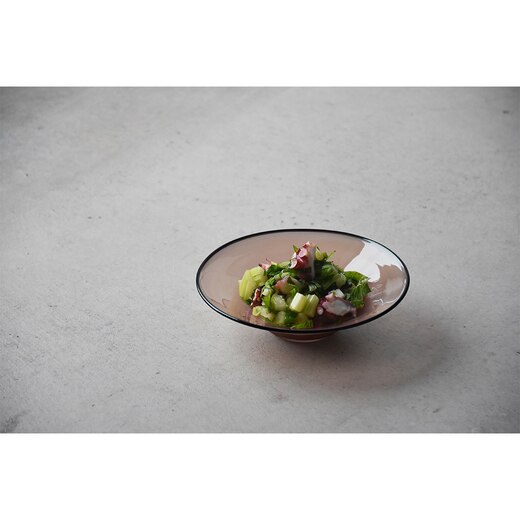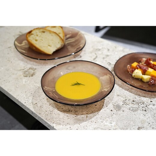 kasumiはその音から分かるように「霞」を表しています。日本という土地を覆い込む空気は、秋の一時を除いて概ね湿度を含んだベールのようなもの。この空気が含んでいる何かを表現した作品です。扱いやすさも考え、程よい厚みを持たせた仕上がりのプレートとボウルは陶器などとも相性が良く、一年を通して使っていただける色味も特徴です。
