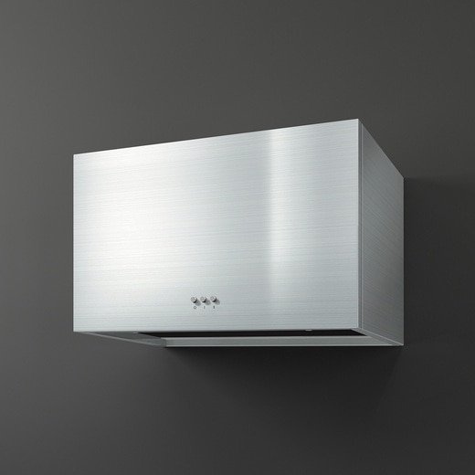 ミラタップ(旧サンワカンパニー)のオリジナルレンジフード《ミニマルプラス》。 コンパクトなサイズ感と究極のシンプルデザインにより、空間に調和します。