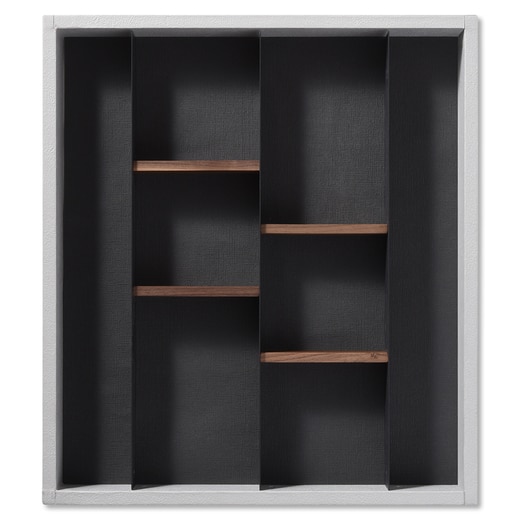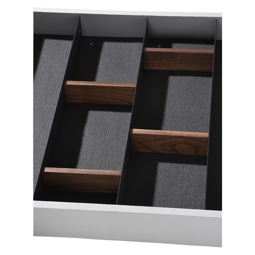 コーディネートが自在にできる引出し用パーティションです。エッジの効いたスチール製の仕切りプレートは収納スペースを最大限に使えるよう設計されており、デッドスペースを生まないわずか1mmの厚さ。質感の良い無垢材のウッドディバイダーを組み合わせることによって収納するものに合わせて形を変えていただけます。別売のマットと組み合わせると収納物がすべりにくくなり、使い心地がさらに良くなります。