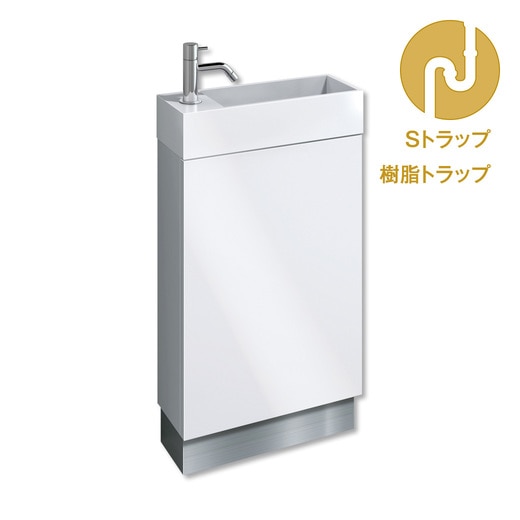 レプト手洗台置型ホワイト 水栓シルバー 樹脂Sトラップセット