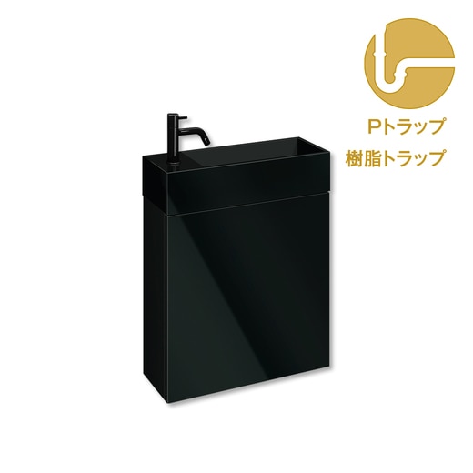 レプト手洗台壁付ブラック 水栓ブラック 樹脂Pトラップセット