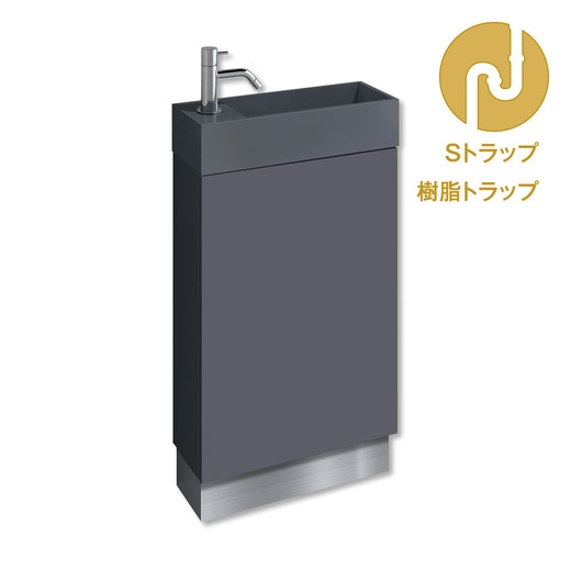 レプト手洗台置型 グレー 水栓シルバー 樹脂Sトラップセット