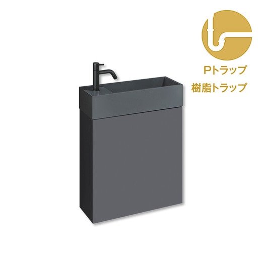 レプト手洗台壁付 グレー 水栓ブラック 樹脂Pトラップセット