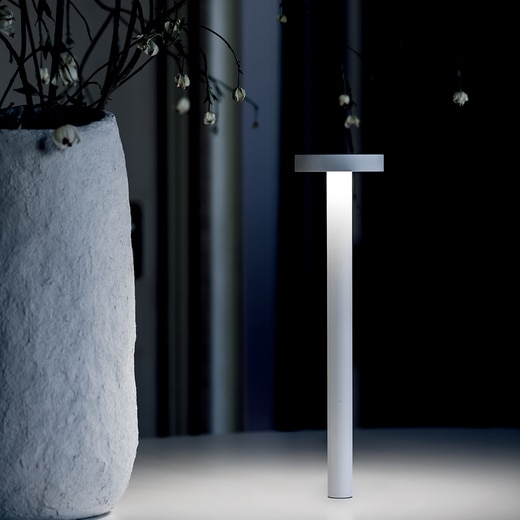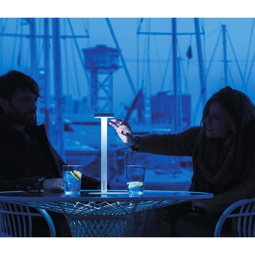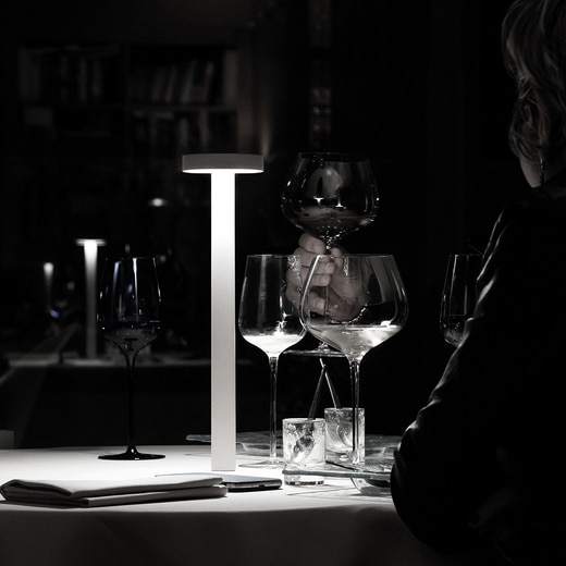 テタテットは、釘のようなフォルムが何ともユニークなテーブルスタンド。充電式で、どこでも自由に設置でき、マグネットでテーブルにしっかりと固定。複数並べても、スリムなデザインなのでテーブルの上を広々と使えます。