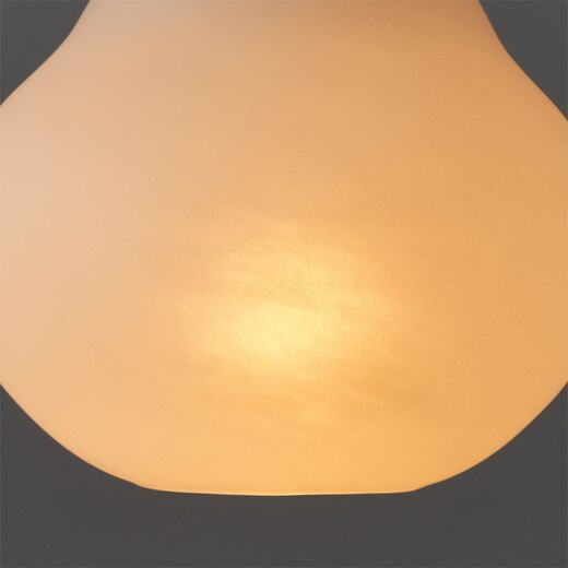 - シェード:ソーダガラス ニップル:天然木 ブラックウォールナット コード:丸打ちコード(捻りのない丸直線タイプ)ホワイト 長さ100cm 付属品:電球(口金E17,25W) ※引っかけシーリング仕様 ●推奨電球 優しいフォルムが引き立つ20~40W程度の明るさがおすすめです。 高熱になるため40W以下の白熱電球か、それ以上のW数の場合はLEDをご使用ください。 ●お手入れ方法 ガラスの汚れが気になる時は柔らかい布で拭いてください。 ●注意事項 ・ハンドメイドのため、製品の寸法・形状・色味や表情には個体差が生じます。 ・粉ガラスによる着色方法の特性上、小さな黒点や、細かい泡、色のむら、白い斑点模様などが見られる場合があります。 ・長時間使用されますと、電球の熱で製品が熱くなる場合がございます。やけどにご注意ください。