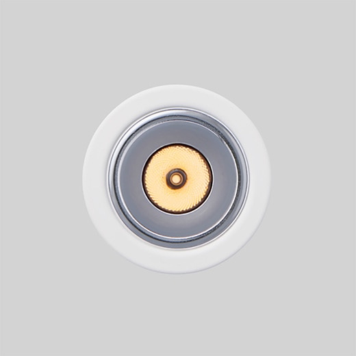 コンパクトで美しいデザインのランプ交換可能なダウンライト。直径わずかφ25の非常にコンパクトなLEDランプを採用し、天井開口径はφ45で、天井面のダウンライトの存在感を抑えます。光源が直接目に入りにくく眩しさを抑えたグレアレスタイプで、快適な空間を演出します。