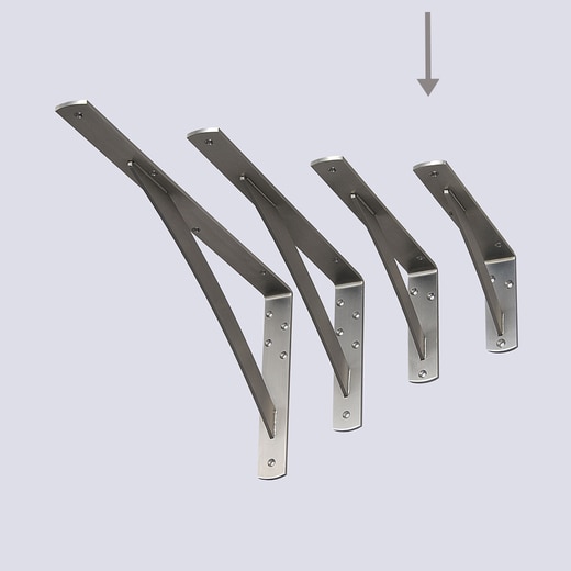 - 仕上げ:ステンレス(SUS304)製 ヘアライン仕上 1個入り メーカー安全耐荷重:145kg(1本あたり) 固定ビス:壁 側/ステン皿タッピン5×45 天板側/ステン皿タッピン5×16