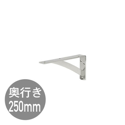 ゆるやかなRの補強がついたシンプルなブラケット。取付けの際は下地の強度、芯材の有無、天板の強度等に充分ご注意ください。
