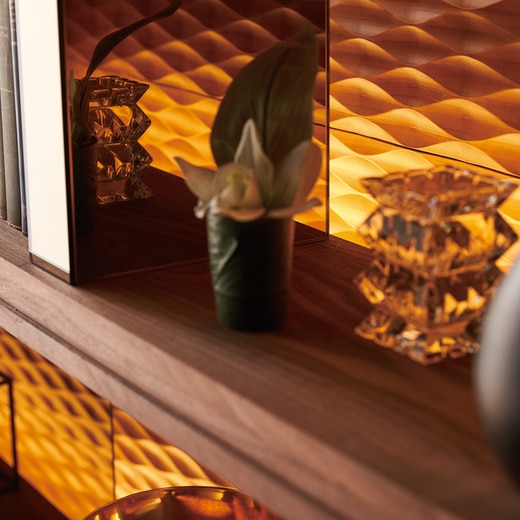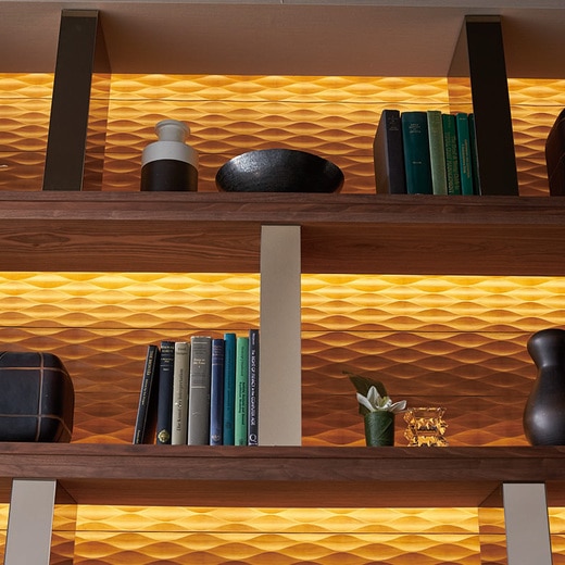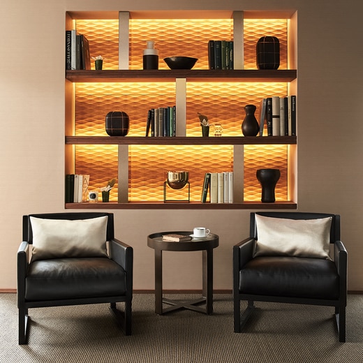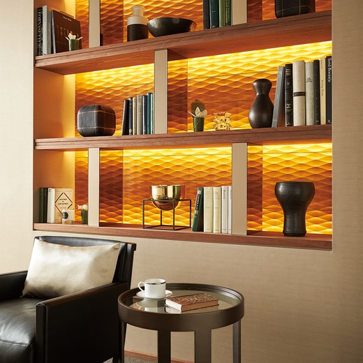 「波」を連想させる静かで柔らかなデザイン。一面に使用しても圧迫感がなく、落ち着いた空間を演出します。