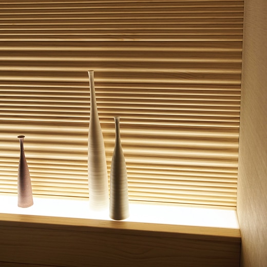 店舗や住宅など、多様なシーンに調和する意匠の無垢のウッドパネルです。必要最小限のデザインで、幻想的な情景をシンプルに表現しています。