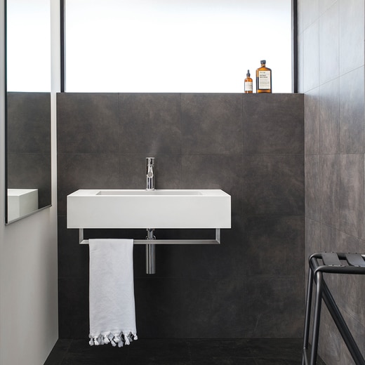 陶器では難しいエッジの効いたスクエアな形状と、光沢を抑えたマット仕上げが印象的なレッタンゴロ洗面。人工大理石を生かしたシンプルデザインは、サニタリー空間に上品な印象を与えます。また、継ぎ目のないデザインは、すき間に汚れがたまりにくく、お手入れも簡単です。同シリーズのレッタンゴロキッチンとのコーディネートもおすすめです。