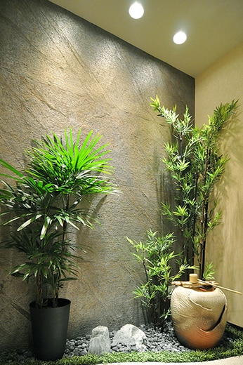 天然の石材を特殊な技術で薄く剥がし、シート状にした内装材です。はさみでの切断や曲面での使用が可能なうえに軽量のため接着剤による貼り付けも可能です。
