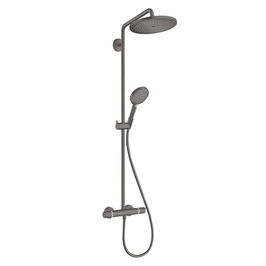 - カラー:ブラッシュドブラッククロム ※PVD加工を施しているため、耐久性に優れています。 ※ヘッドの回転規制はありません。ヘッドが壁に当たらないように、使用の際はご注意ください。 ※ご使用になるシャワーブースや空間によっては、ヘッドのサイズと回転によりはみ出る場合や、壁に当たる場合がございます。ご購入前に事前にご確認ください。 ※洗い場用の吐水口(カラン)なしのタイプ。ハンドシャワーと、オーバーヘッドシャワーの切り替えができます。 ※シャワーパイプの長さは変えられませんので、取付位置についてはご注意ください。 ※止水後しばらくの間シャワーから水滴が落ち続けることがあります。シャワーヘッド内の残水がなくなれば止まります。 ※1901年、ハンス・グローエ氏によって創設されたシャワーと水栓金具の老舗メーカー「ハンスグローエ」。 世界シェアNo.1を誇るシャワーから洗面、キッチン水栓まで革新的なテクノロジーを追求し、業界のスタンダードを作り続けるイノベーションブランドです。 高い技術力に裏打ちされた革新性と快適性、数々の受賞歴をもつ優れたデザイン、エコ性能で、世界の一流ホテルから一般のご家庭まで幅広く愛されています。