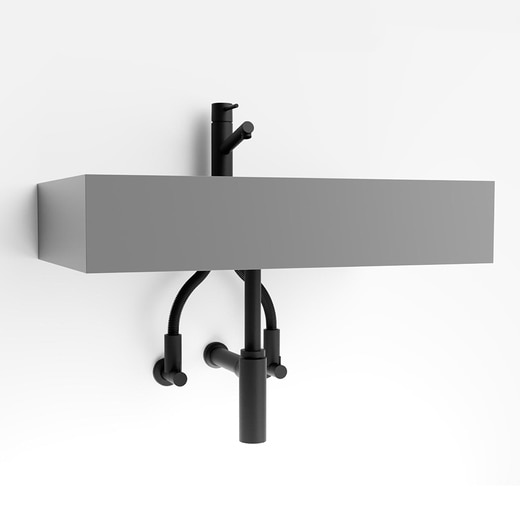 隠したい配管も魅せる止水栓へ。ブラックの水栓や排水金具とコーディネートすることで、隠すことなく統一感のある洗面空間になります。単水栓と混合水栓のどちらにも対応可能です。