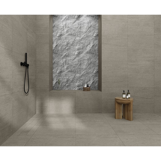 《カルノーク》は、イタリアのボルセーナ湖近くのバニョレージョで採掘される、バサルトと呼ばれる天然石からインスピレーションを得ています。細かく均一な石目と自然な色調の変化が特徴でミニマリズムのすっきりとしたラインと天然石特有の柔らかさが調和され、様々な素材とシームレスに組み合わせることができます。濡れると滑り止め効果が増す「Micro Step」を採用しており、場所を選ばずお使いいただけます。